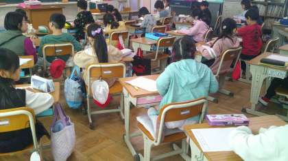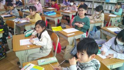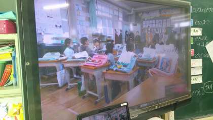 きのうのはっっぴょうかいのようすを見ながら、ふりかえりをします。