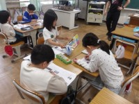 3年生の教室の様子です。担任の先生の自己紹介を聞いています。