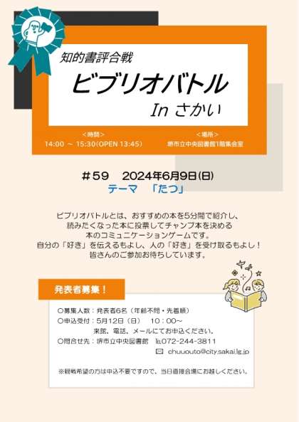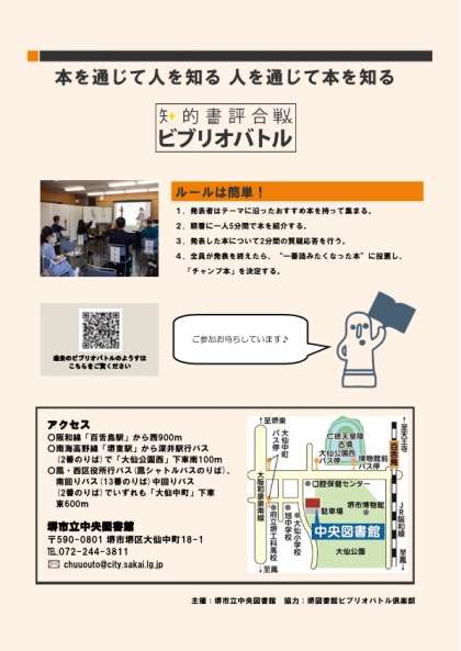 堺市立中央図書館から、以下のような「ビブリオバトル」の案内が届いていますので、お知らせします。