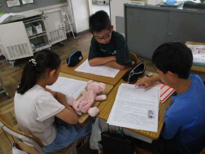 物語文を読んで、グループで聴きあいをしている場面です。