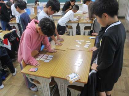 百人一首をしました。前回より、早くとれるようになったかな?