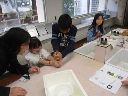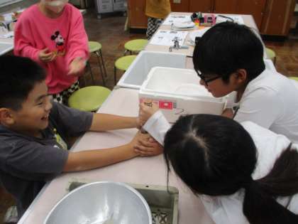 理科室で実験をしています。