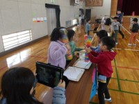 2年生が保育園児を招待して行う”わくわく広場”本番の前に,1年生にお客さんになっ...