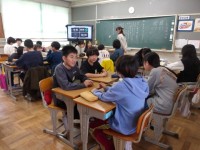 4~6年生は,どの学年も国語の授業をしていました。即興でお話を1文ずつグループで...