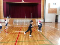 運動場いっぱいを使って,サーキットトレーニングに楽しく取り組みました。