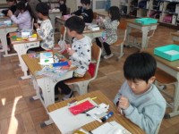 どんぐり工作活動について振り返りました。「ちゃんとかんがえて,おきゃくさんがよろ...