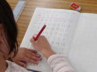 足し算の復習として,「70マス計算」にチャレンジしていました。ノートにびっしりと...