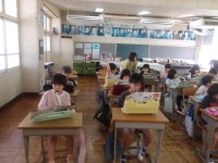 四角形をかく練習をしました。たくさんの手があがり、やる気いっぱいの2年生です。