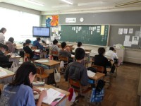古典芸能に親しむために,狂言「柿山伏」を音読しています。グループ音読をした後,有...