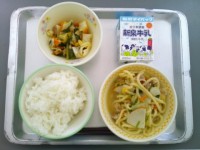 今日の献立は、ご飯、牛乳、チャンポン麺、こまつなサラダです。こまつなは、鉄分を多...