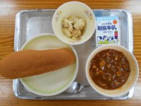 ・ビーンズシチュー・ツナとポテトのマヨネーズ風味焼き・コッペパン・牛乳