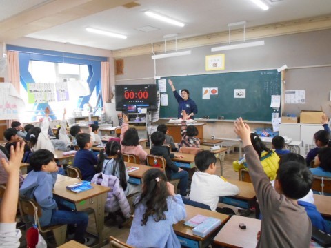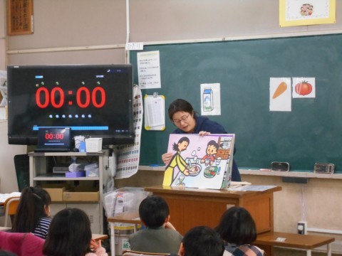1年生は給食の先生に来ていただき食育の授業をしていました。