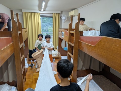 各部屋で寝具の片付けなどを協力しておこなっています。