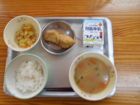 ・さつま汁・白身魚フライ・キャベツのソテー・ごはん・牛乳