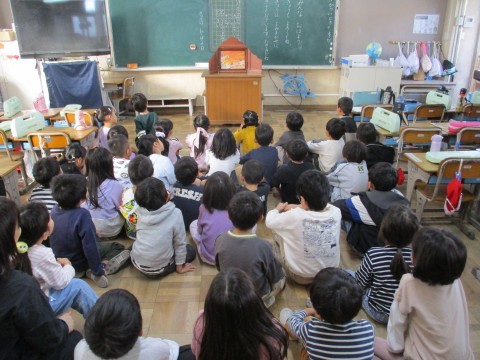 読み聞かせの方に来ていただき、絵本の読み聞かせや紙芝居をしていただきました。...