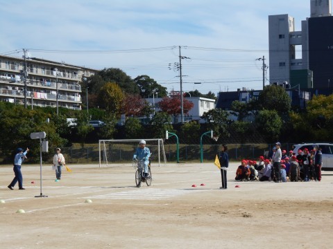 4年生 交通安全教室の様子です。交通ルールを守ることの大切さを実地訓練を通して学びました。
