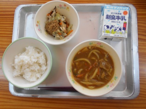 ・カレーうどん・和風サラダ・牛乳・ごはん