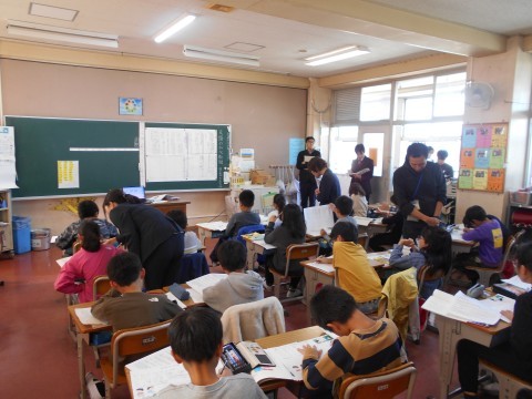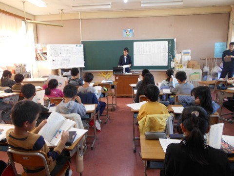 4年生 国語の研究授業の様子です。「ミステリーのおもしろさを話し合おう」の単元で,「推理と根拠」を教科書から読み取って発表し,「友情のかべ新聞」づくりを行いました。