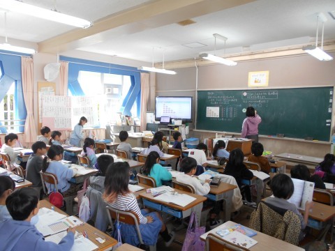2年生の授業の様子です。 算数「かけざん」 国語「そうだんにのってください」の単元です。