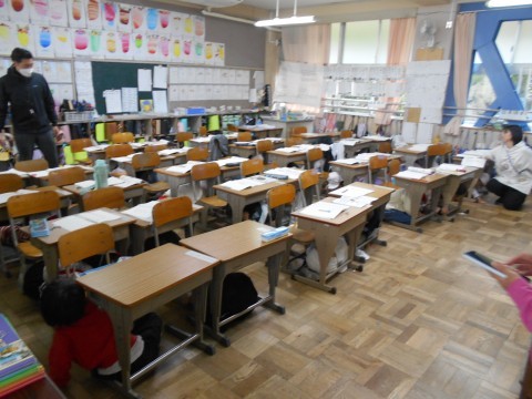 机の下にもぐって頭を守ること,初期消火にすばやく駆けつけること等,しっかり確認をしました。