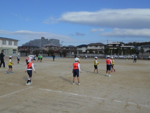 3年生 体育「パスフットボール」の研究授業が行われました。