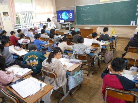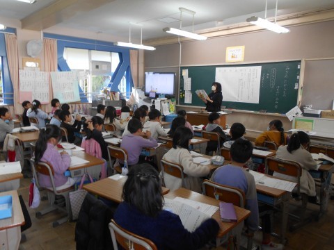2年生の授業の様子です。国語「お話のあらすじをまとめよう」 算数「2学期のまとめ」です。