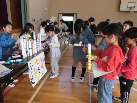 2年生が作った 動くおもちゃで 楽しみながら遊んでもらいました!