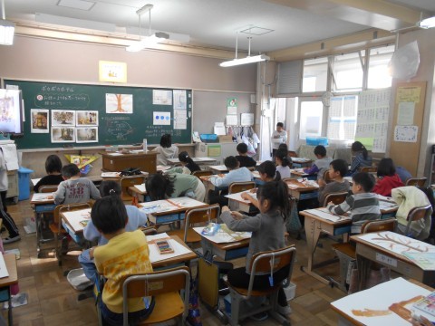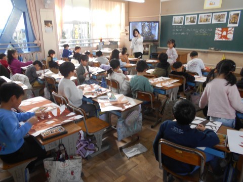 2年生 図工「ポカポカホテル」の色塗りの様子です。素敵な作品ができそうです。