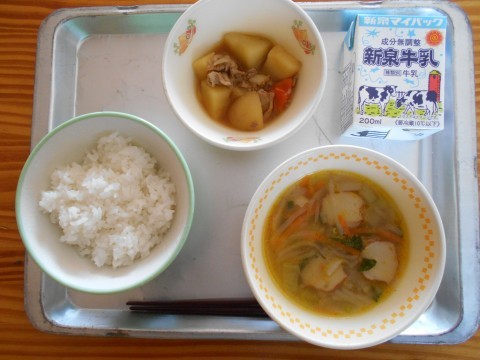 ・ワンタン・中華風肉じゃが・ごはん・牛乳