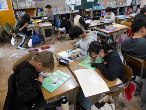 5年生 図工「版画」の様子です。よい作品に仕上がってきています。