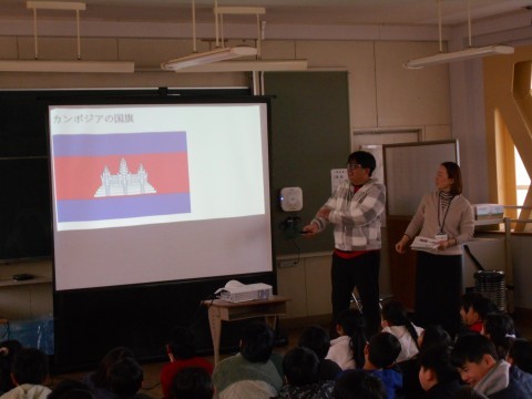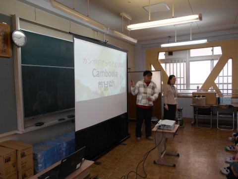 4年生 多文化交流の様子です。大阪の大学で勉強されているカンボジア国籍の学生さんに来校いただき交流をしました。カンボジアの文化について初めて知ることばかりでした。楽しく交流することができました。