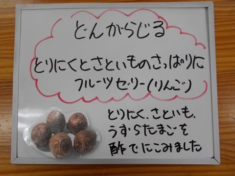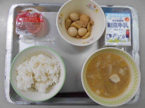 ・どんがら汁・鶏肉と里芋のさっぱり煮・フルーツゼリー・ごはん・牛乳