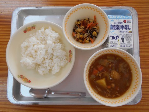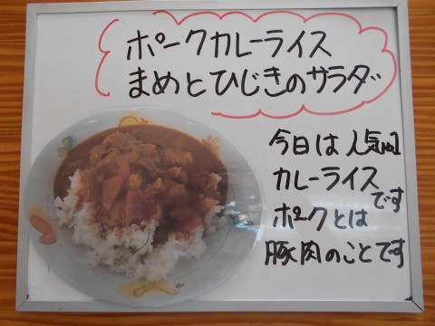 ・ポークカレーライス・豆とひじきのサラダ・ごはん・牛乳