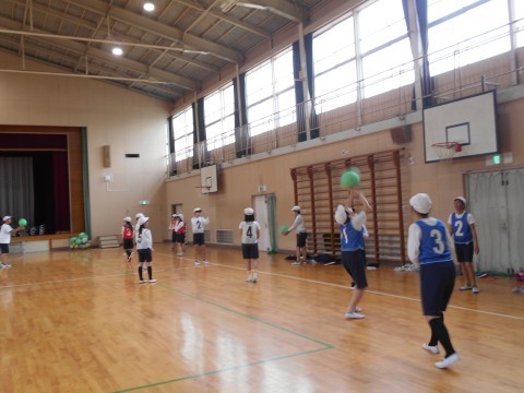 6年生 体育 「ソフトバレーボール」の様子です。