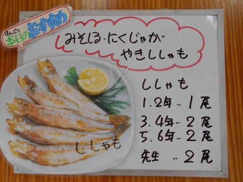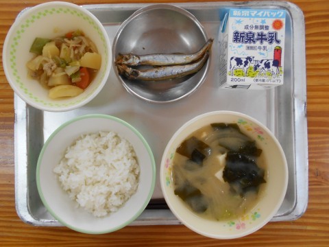 ・みそ汁・焼きししゃも・肉じゃが・ごはん・牛乳