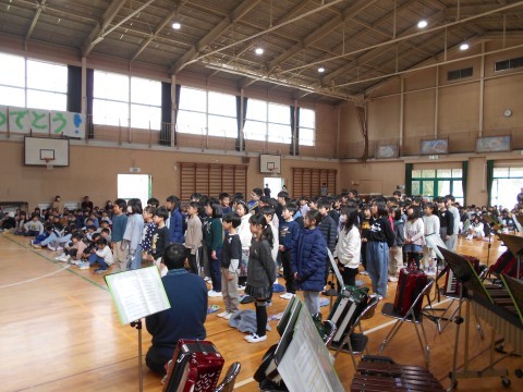 6年生を送る会では,1年生は歌とエール,2年生は歌と記念品渡し,3年生は歌とお礼の言葉を贈りました。