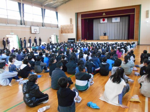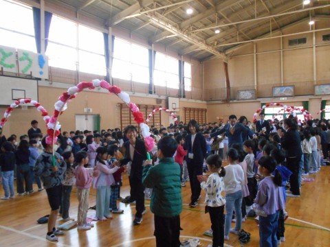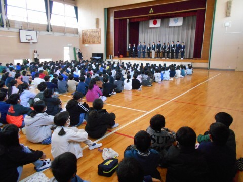 離任式では,お世話になった先生方を拍手でお見送りしました。