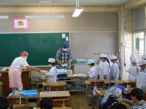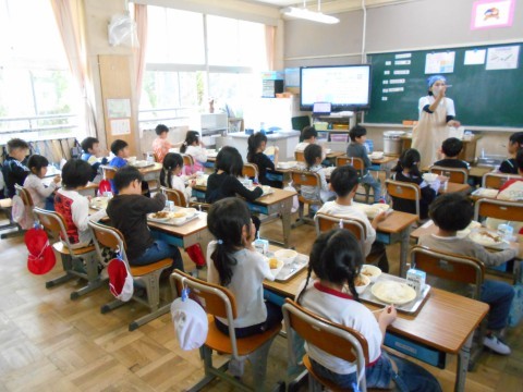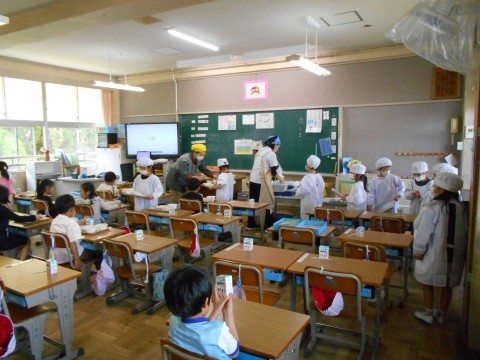 1年生は,小学校初めての給食です。準備や片付けも自分たちで頑張ります。