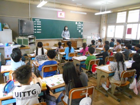 1年生では,音楽の先生が,音楽の授業をしてくれました。