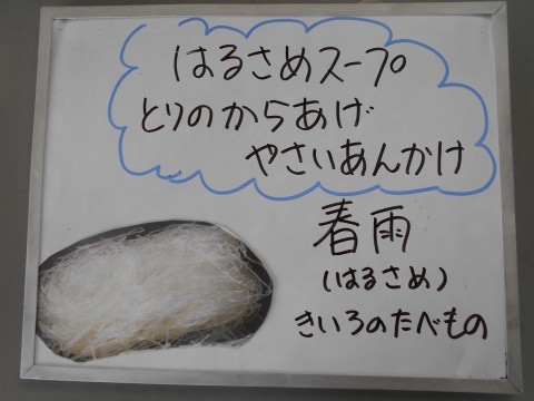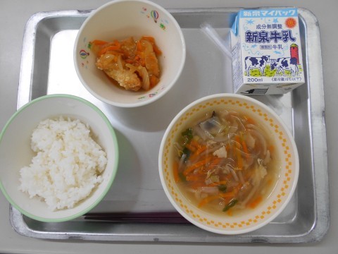 ・春雨スープ・鶏唐揚げの野菜あんかけ・ごはん・牛乳