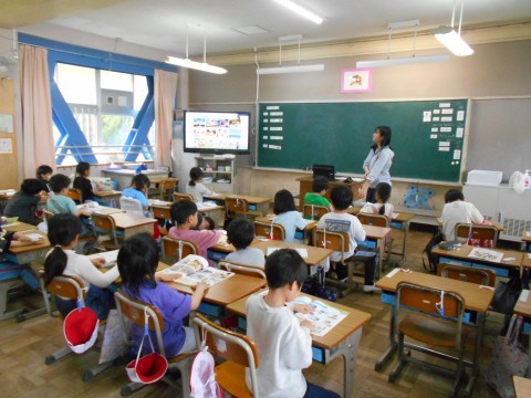 1年生は生活科の授業です。学校探検の準備をします。