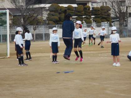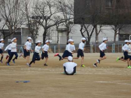 4年生は体育の時間持久走を頑張っています。
