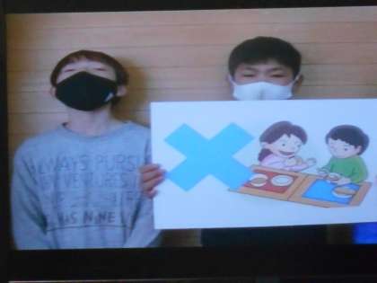 給食前の手洗いや消毒,食事中におしゃべりしないなど