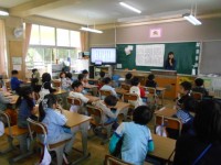 1年生では,音楽の先生が,音楽の授業をしてくれました。国語の授業では,線運びの練...