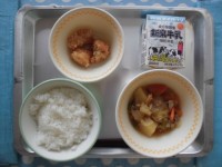・ごはん・牛乳・肉じゃが・チキン南蛮 でした。チキン南蛮は、甘酢のタレが絡んだ鶏...