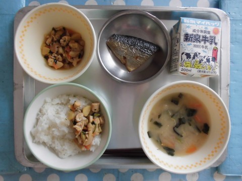 今日の給食に登場するきのこや栗、さばも秋の食材です。