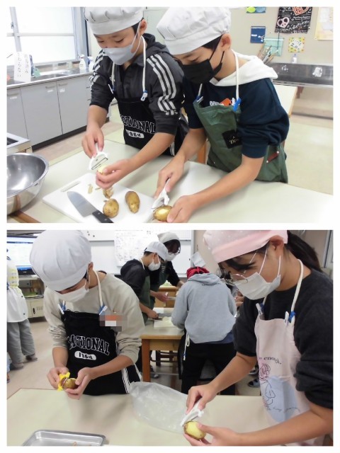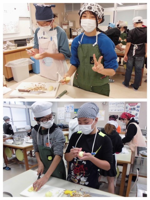 じゃがいもの皮むきや薄く切るのに苦戦していましたが、無事に上手に切ることができていました!