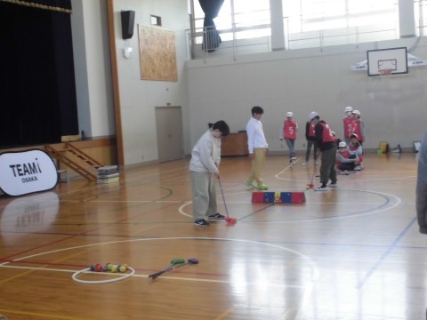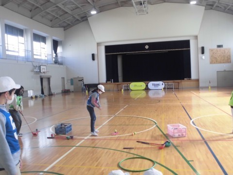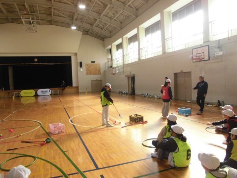「大阪府トップアスリート小学校ふれあい事業」で、「一般社団法人ジュニアゴルフクラブチーム連盟」の事務局長様と「一般社団法人TEAM-I」プロ選手様にお越しいただきました♪初心者向けのゴルフ(スナッグゴルフ)の体験の機会をいただきました♪
