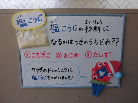 今日の豆とひじきのサラダのドレッシングは、塩麹ドレッシングでした。