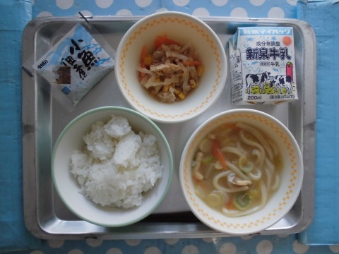 給食では、白みそと赤みそを使用し、やさしい味つけに仕上げました。